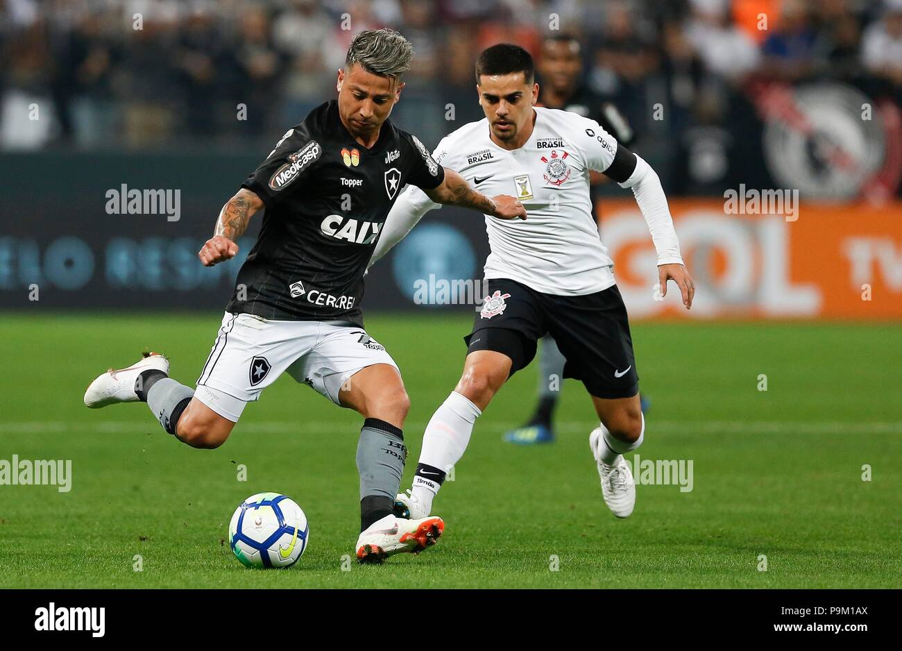 Sao Paulo Sp 18 07 2018 Corinthians X Botafogo Leo Valencia Is Scored By Fagner During The Match Between Corinthians And Botafogo Held At The Corinthians Arena East Zone Of Sao Paulo